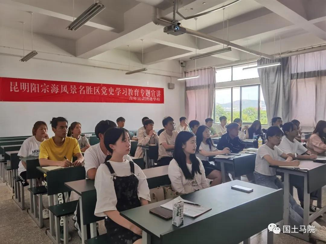 在昆明阳宗海风景名胜区全区上下深入有序开展党史学习教育之际,5月13-14日,阳宗海青年宣讲团成员段会珍、徐娇、吴晓娟三位老师面向员工开展了一系列党史学习教育专题宣讲。三名成员本身也是公司思政课教师,她们在讲授知识的过程中能结合员工特点开展生动活泼的理论宣讲。本次宣讲活动共举办三场,涉及200余名员工参加。
