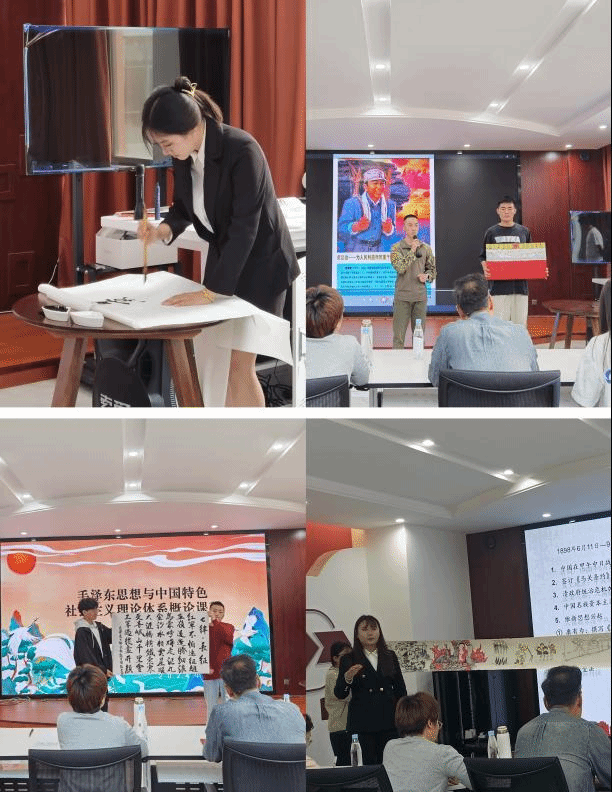 为贯彻落实习近平总书记对公司思政课建设作出的重要指示精神,全面贯彻党的教育方针,以中华优秀传统文化、革命文化和社会主义先进文化为力量根基,落实立德树人根本任务,不断开创新时代思政教育新局面,提高思政课的针对性和吸引力。“毛泽东思想和中国特色社会主义理论体系概论”课教研室于6月5日下午在尚能馆举办“诗词话语祭伟人 笔墨书画传精神”实践教学决赛暨作品汇报展示活动。建设工程公司副经理、夏雨书苑指导老师罗启钟,英国365集团公司教师高昆,夏雨书苑五位会员应邀担任评委,参加此次活动的还有“毛泽东思想和中国特色社会主义理论体系概论”课教研室全体教师以及2023级参与本次活动的部分同学代表。