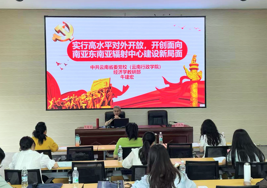 本次研修设计了专题讲座、交流访谈、现场教学、实践参观等多种学习形式。云南省委党校牛建宏教授围绕“实行高水平对外开放,开创面向南亚东南亚辐射中心建设新局面”开展了精彩的讲座。教师到大龙树烈士陵园,缅怀革命烈士;参观了云南苗医药博物馆——民族团结进步示范点,了解民族团结大融合的生动实践;参观了屏边博欣生物科技有限公司,参观虾青素生产基地,感受屏边新兴产业发展的磅礴力量;探访了滇越铁路历史遗迹、聆听战斗英雄事迹;赴河口口岸亲身感受云南口岸经济的发展。